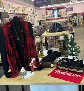 WINGS Resale has a variety of clothing from beautiful evening wear to festive/ugly sweaters or beautiful evening wear.