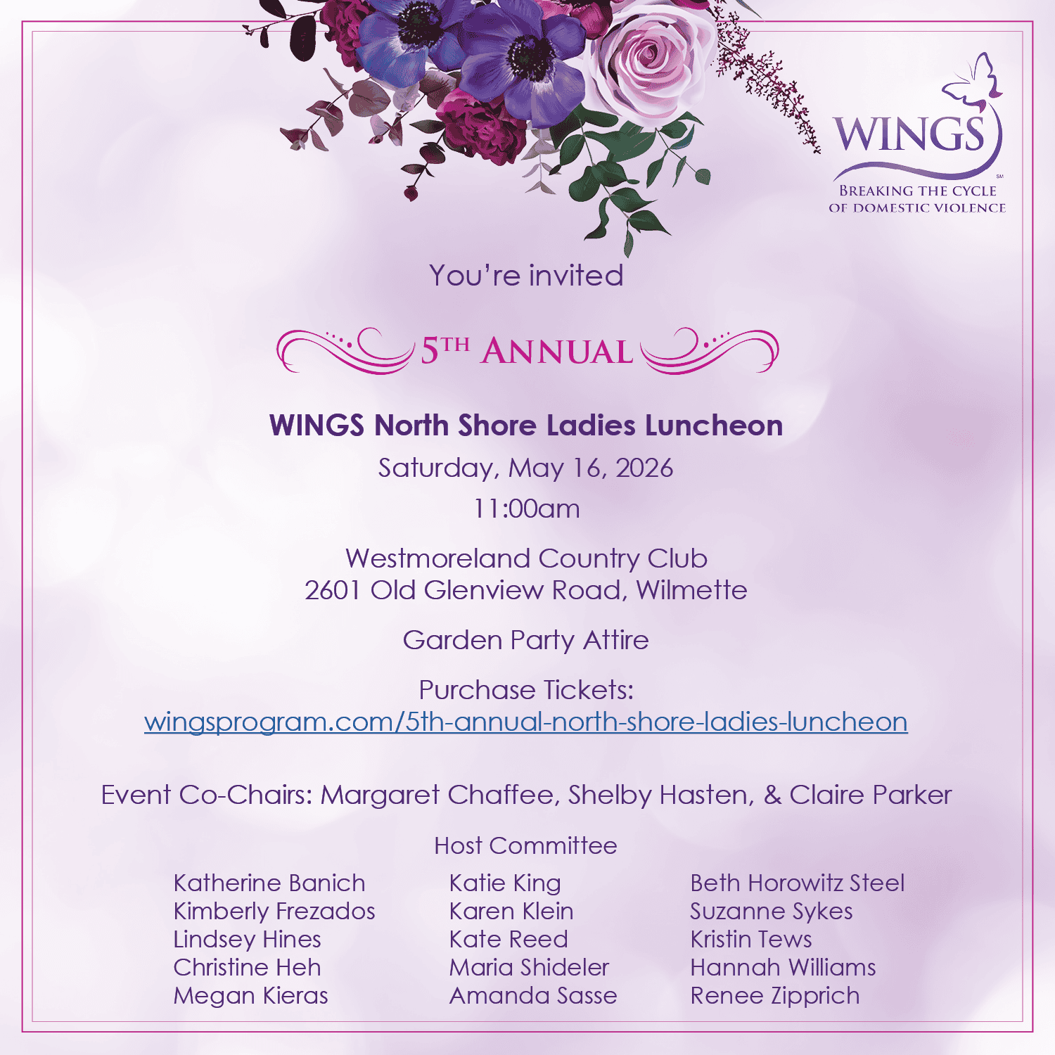 Created and led by longtime WINGS supporters Katherine Banich and Maria Shideler, WINGS North Shore Leadership Council has raised significant awareness and funds for WINGS domestic violence solutions.