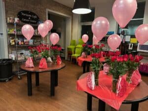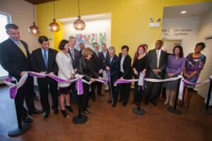 | Former Mayor of Chicago Rahm Emanuel cuts the ribbon opening WINGS Metro Safe House in 2016. | WINGS Metro clients receive special gifts on Valentine’s Day organized by former WINGS graduate. | Raquel, WINGS Metro Safe House Kitchen Coordinator | ||